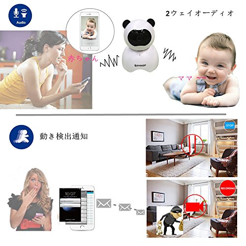 EYEKOP ネットワークカメラ ベビーカメラ 暗視 遠隔操作 動体検知 警報機能 マイク内蔵 赤ちゃん ペット 防犯 監視 ベビーモニター (E1-960P)