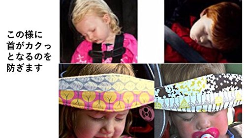 子供は車の中でよく眠ってしまいますが、首がかっくんとなる事が多くありませんか?ネックピローは夏は蒸れるし、段々とズレてしまい、うまくはまってくれなかったり・・・ そんな時に、このベルトを使えば、首がかくんとなるのを防いでくれます。 おでこの部分は優しい布で出来ているので、跡もつかず、ベルト部分はゴムなのでチャイルドシートの大きさに合わせて伸びる事が可能です。 大切なお子様の快適な睡眠をサポートします。