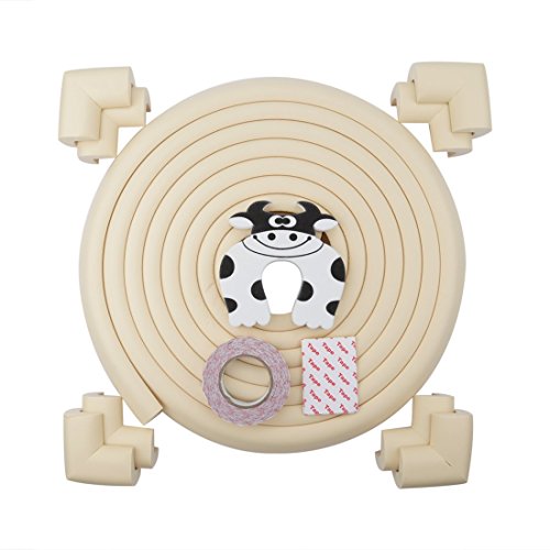 LEDMO 16.2 ft Baby Edge & Corner Guards Set ( 15 ft Edge Guards + 8 Pcs Corner Guards + Door Slam Stopper ), Soft Dense Cushion Foam for Baby Safety (Cream) [並行輸入品]