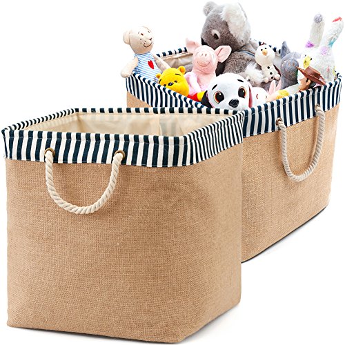 折りたたみバスケットEZOWare Laundry Hamperバケット黄麻布キャンバスストレージコンテナBin for Office、ベッドルーム、クローゼット、洗濯、玩具& More – Withブルーandホワイトトリム 2-Pack 885157977982