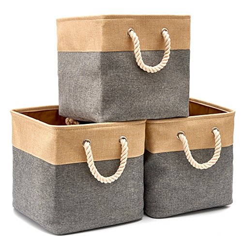 Collapsible Storage Binキューブバスケット[ 3?- Pack ] EZOWare折りたたみ式ハンドル付きキャンバス生地ツイードストレージビンセットforホームオフィスクローゼット(13?x 13?x 13インチ) グレー 885157841115