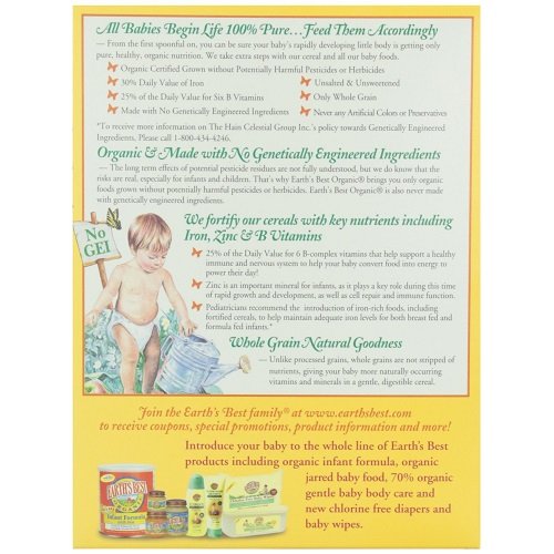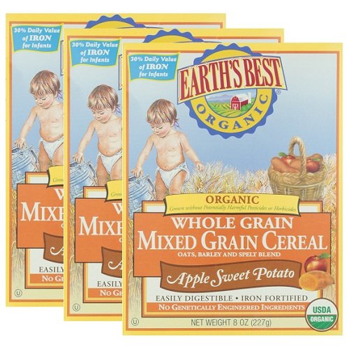 - Earth's Best社のオーガニックホールグレイン(全粒)ミックグレインシリアル(アップル+スイートポテト味)は、初めての固形食にぴったりの赤ちゃん用シリアル!