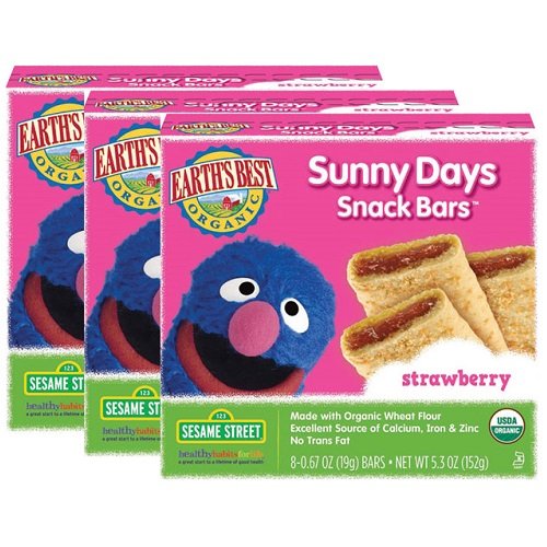 - Earth's Best社のセサミストリートのパッケージのオーガニックスナックバーは、幼児向けいちご味の柔らかい食感のスナックバー!