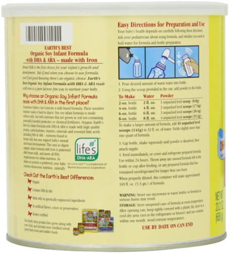 - Earth's Best Organic, Soy Infant Formula with Iron, 23.2 Ounce