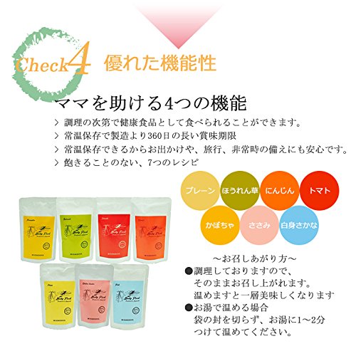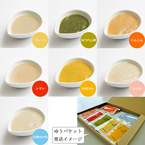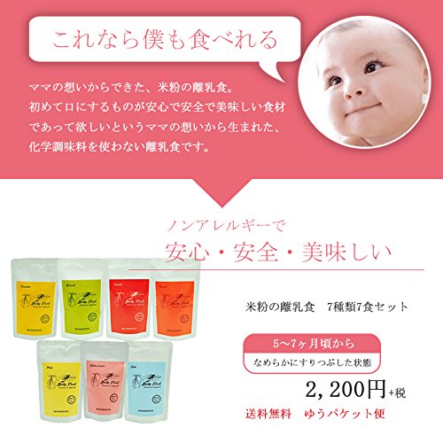 - 【全国送料無料ゆうパケット便】 無添加、ノンアレルギー、ベビーフード 5ヶ月頃~7ヶ月頃 7種類セット。初めて口にするものが安心で安全で美味しい食材であって欲しいというママの想いから生まれた、化学調味料を使わない離乳食です。