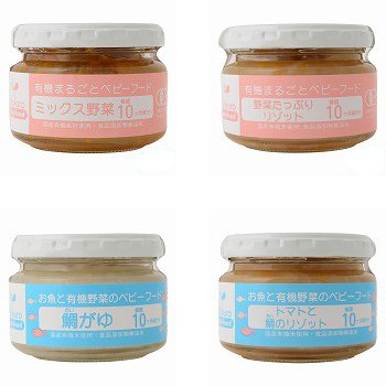 - 有機JAS認定食品。後期10か月頃からの有機まるごとベビーフードシリーズ4種類12食セット(離乳食)