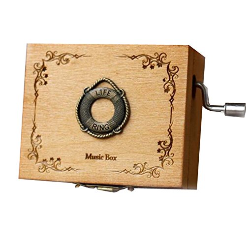 木製のオルゴールミニハンドクランクオルゴールの高さ約1.3インチ(Lifebuoy)