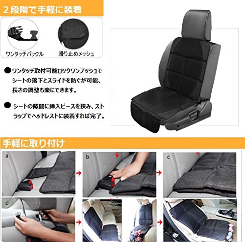 - ✪2段階のステップで手軽に装着+品質保証:1.しっかり固定ために、ロックワンプッシュでシートプロテクターの落下とスライドを防ぐが可能、ワンタッチ取付なので、長さの調整も楽にできます。2.シートの隙間に挿入ピースを挟み、ストラップでヘッドレストに装着すれば完了!保証:お買い上げ日から12ケ月間のメーカー保証が付いており、万が一製品にご満足いただけない場合は、ぜひご連絡下さい、弊社は全心全意的に解決させて頂けます。