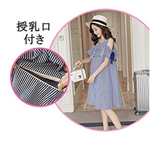 - 涼しげなブルーストライプのオフショルダー授乳ワンピースです。細見え!着痩せ!