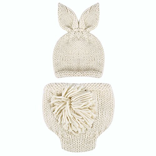 - Easydeal Newborn Baby Boy Girl Handmade Rabbit Outfits Knitted Crochet Photography Props Bunny Hat Pompom Pants Set (0-2M)