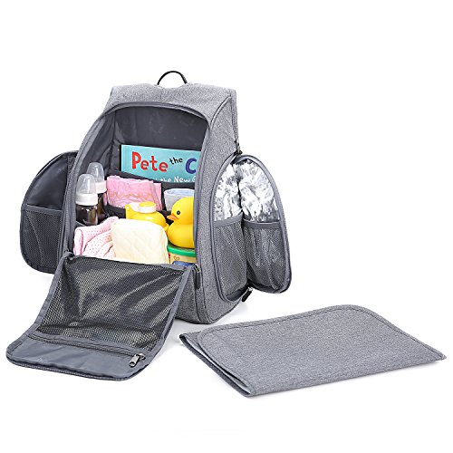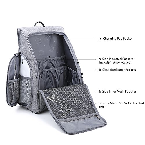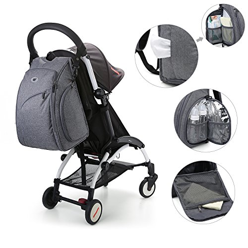 ECOSUSI マザーズバッグ リュック キャンバスバッグ 軽量 大容量 多機能 22L グレー