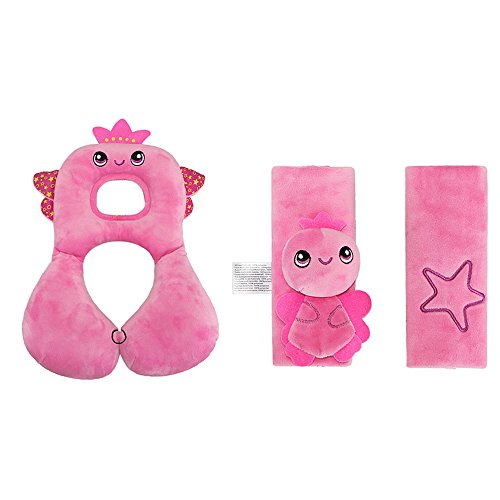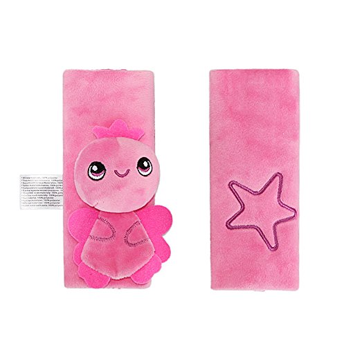ベビー幼児のカーシート用アクセサリ - ソフトヘッドレストネックサポートと1-4歳の幼児用シートベルトストラップカバー - 快適でリバーシブル - 漫画ピンクの妖精