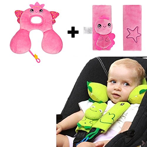 - ソフト&快適な赤ちゃんのカーシート枕頭頸部サポートおよびベルトストラップカバーセット - 1×ヘッドレスト、2×ベルトストラップカバー