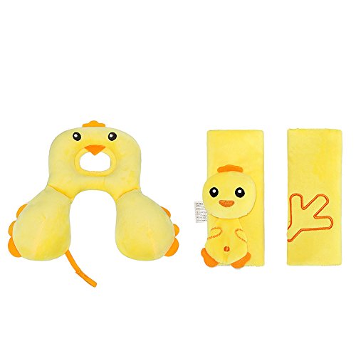 ベビーチャイルドカーシートアクセサリーセット - 頭頸部サポートと赤ちゃんの安全シート用のベルトカバーストラップやベビーカー - 漫画黄色チキン - 1-4年