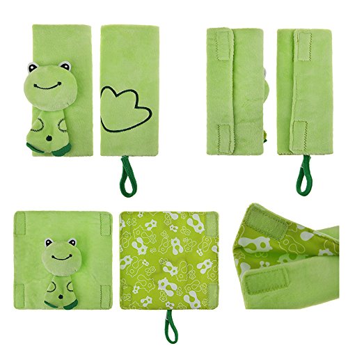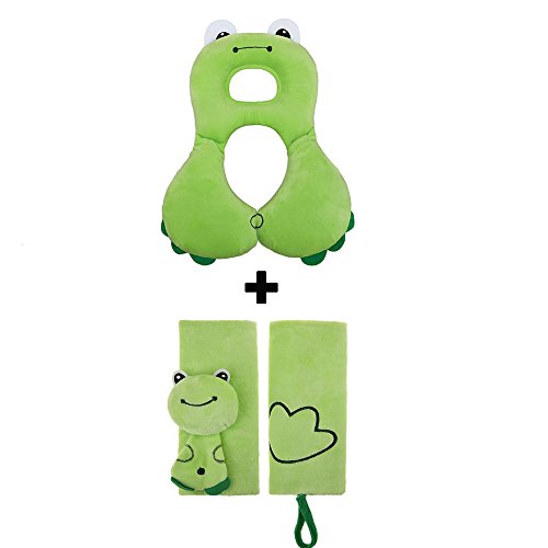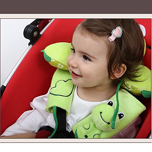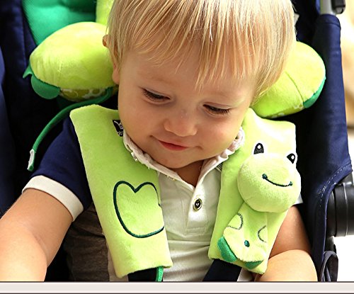 赤ちゃん幼児頭頸部サポートヘッドレストおよび安全ベルトカバーストラップ - 漫画の緑のカエル - 1-4年