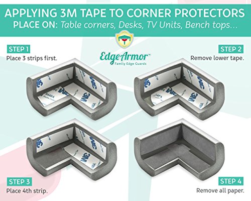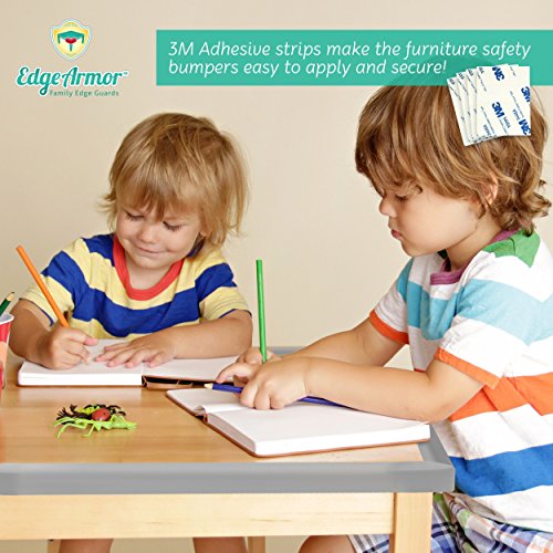 PERFECT THICKNESS - The foam bumper cushions on your furniture have just the right thickness to absorb impacts that may harm your children. Just by press on them and rest easy knowing that your child will not be bruised and battered when they fall. Keep your little ones safe and add to cart now.. Edge Armor Your Home with this Fantastic EXTRA VALUE 16 Piece Pack of corner guards from Edge Armor! Apply these foam guards on coffee tables, desks, bedside units, kitchen countertops, or any other sharp edge that may hurt your little one. Each pack comes with 3M double-sided adhesive strips for easy and secure application. Get your Edge Armor set and keep your child safe at home today.