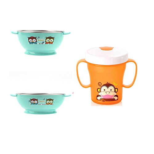 エジソン子供ステンレスボウル 2pack (Small,Large) Blue + ストローカップ Kids No-Spill Trainer Straw Cup(Orange)