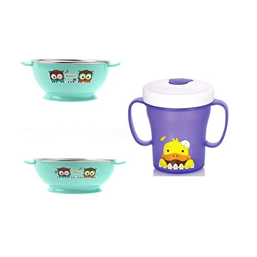 エジソン子供ボウルセット 2pack (Small,Large) Blue ・子供ストロー両手カップ(Purple) [並行輸入品]