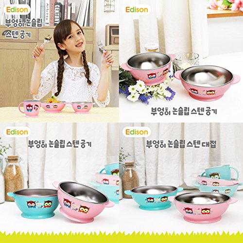 エジソン子供ステンレスボウル 2pack (Small,Large) Blue + ストローカップ Kids No-Spill Trainer Straw Cup(Purple)