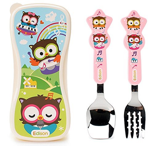 Edison Owl Star Spoon Fork Case Set For Kids 4y+ (Pink) by Edison