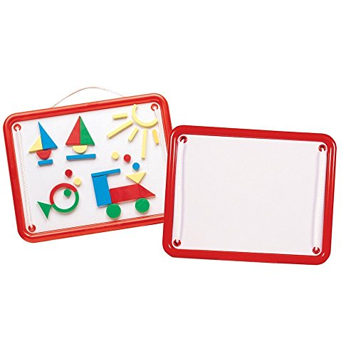 This dual-purpose coated metal board is perfect for use with magnetic letters, numbers, and shapes, or with wipe-off markers for math, reading, and art activities. Rope attached to individual-sized board allows easy carrying or hanging. Coated metal board with frame measures 14'L x 11'H.
