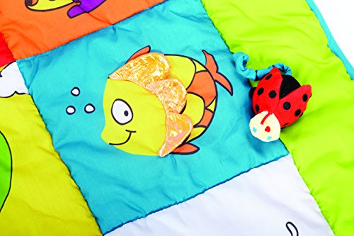 Soft fabric mat;2 sided playmat;Full of textures, noise maker and a baby safe mirror for hours of developmental fun;Full size 40 x 60;Machine washable