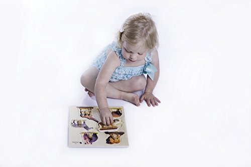 High quality wooden puzzles with real life images are ideal for toddlers and preschoolers. All pieces include a large knob.