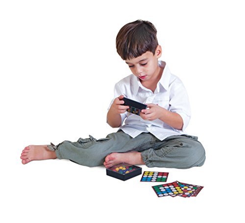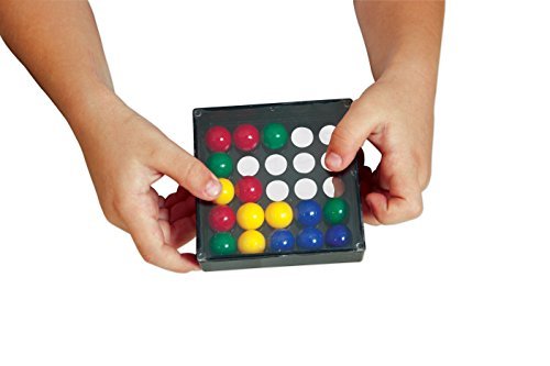 A great game to develop color matching and finger dexterity. Non-removable marbles are manipulated through the holes in the bottom of the 2 game boards. Use one of the 14 pattern cards or color up to 14 of your own patterns on each card's black and white patterned back. Who can match the pattern first?