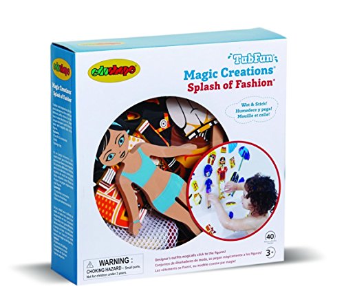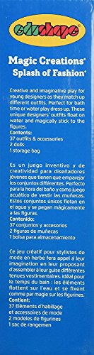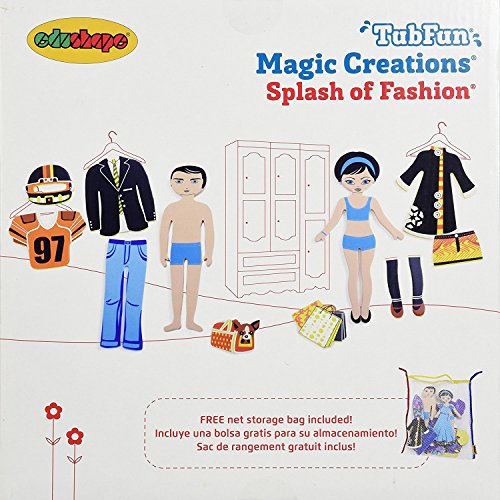New and improved edu-foam kits which stick to bathroom tiles and each other when wet for bath time fun. Long lasting edu-foam is highly resistant to mold and mildew. The pieces will not absorb warer or change shape. Combine kits for additional fun. Comes with surface water drain bag for easy clean up. Fashion set includes new outfits for the girl and boy dolls included. For ages 3 and up.