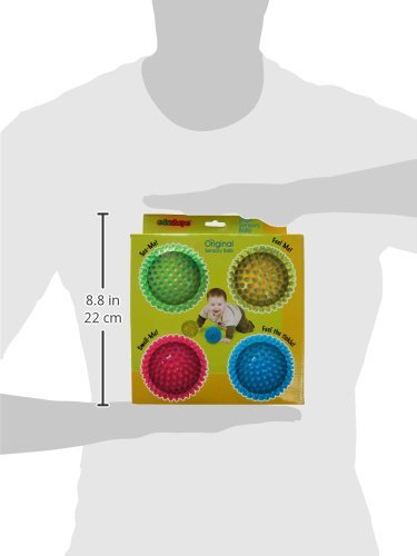 Multi-sensory balls encourage the development of fine and gross motor skills. view larger The original 4' sensory balls now available in a unique combination that include even more sensory development and stimulation. Includes the popular senso dot featuring contrasting colored nubs (adds visual sensory development), a see me (see through), opaque (solid color) and a brand new scented original sensory ball for even more stimulation. Edushape sensory balls feature very thick material and a non-removable inflation/deflation valve to ensure a long lasting toy. The multi-sensory balls encourage the development of fine and gross motor skills, hand eye coordination, tactile sensory development, and socialization plus is an EZ grip product. Edushape's sensory balls have been a favorite of infants and toddlers for well over a decade and used by parents, caregivers, day care, pre K, schools, adult and pediatric therapy for their soothing, stimulating and developmental qualities.