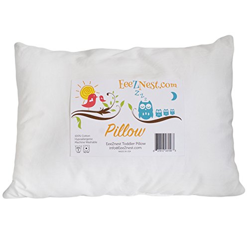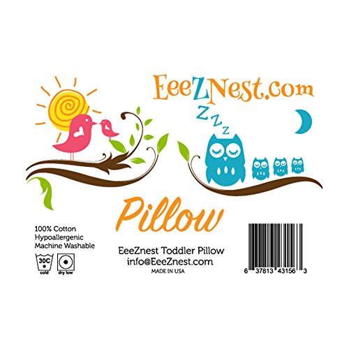 This premium, organically inspired toddler pillow is filled with 100% virgin synthetic Polyester cluster fiber covered with 100% Hypoallergenic cotton.;Soft, SAFE and sure to help create a longer, more peaceful rest.;Ultra durable, won't bunch or clump!;Meticulously filled and inspected to the optimum softness.;Made in the USA, using 27 years of experience and quality assurance. EeeZ to clean; Machine Wash and Tumble Dry.