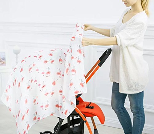 Effiku(エフィック) おくるみ ベビー ブランケット ガーゼ スワドル 120cm×120cm 出産祝い 授乳ケープ お昼寝に (フラミンゴ柄)