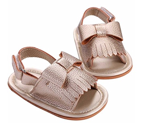 Effiku(エフィック) ベビー フリンジ リボン サンダル ベビーサンダル ベビーシューズ 可愛い 女の子 滑り止め 11cm-13cm (11cm, ゴールド)