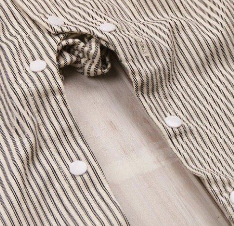- ロンパースはボタンの前開きで足の下まで開けられるので、オムツ替えも楽々です。