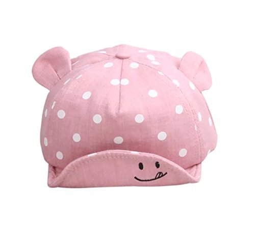 Effiku(エフィック )ベビー キッズ 可愛い 耳付き キャップ 帽子 UV 日よけ ハット 男の子 女の子 水玉 笑顔柄 (ピンク)