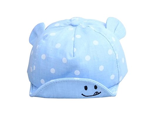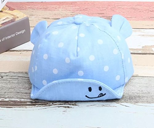Effiku(エフィック) ベビー キッズ 可愛い 耳付き キャップ 帽子 UV 日よけ ハット 男の子 女の子 水玉 笑顔柄 46-50cm 0-3歳 (ライトブルー)