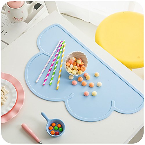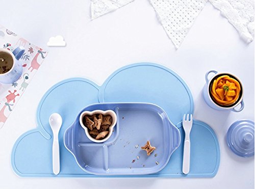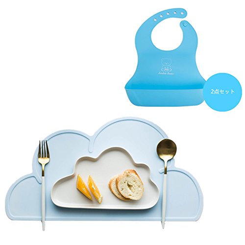 【食事マット】サイズ:47.8*27*0.3cm 材質:食品級シリコン 仕様:雲 カラー:ブルー 耐熱:-40°~+230° 対象年齢:つかみ食べがはじまるころ(8ヵ月ごろ)から 1、ランチョンマットとして、お皿がわりにも、マルチに活躍する食卓マット!2、くるくる丸めてコンパクトに収納できます。3、シリコンマットなので、使用後は食洗器でお手入れも簡単!約200gと軽量で、お出かけの際も丸めて持ち運びもラクラクです。 サイズ感は商品画像を参照ください。【ベビービブ】サイズ:32*26cm 材質:熱可塑性TPE カラー:ブルー 耐熱:108° 対象年齢:つかみ食べがはじまるころ(8ヵ月ごろ)から 1、深いポケットで食べこぼしをしっかりキャッチできるお食事用スタイです。2、離乳食が始まった赤ちゃんから、まだまだ自分でキレイに食べられない幼児まで、長くお使い頂けます。3、使用後は湿らせた布を使用するか、流水で水洗いが可能です。シリコン製なので、衛生的に保てて安心です!4、男女共に人気の色を揃えておりますので、出産祝いやプレゼントにも最適です!5、成長に応じて首周りを5段階にサイズ調整できます。くるっと丸めるとコンパクトに収納できるのでお出かけに便利。
