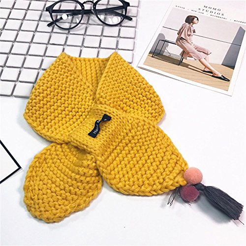 無地タマタッセル児童ニットマフラー黄色い毛糸