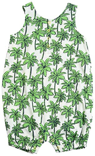 特徴として、全体に散りばめられたヤシの木プリント^フロントとスナップ留めの下部^柔らかなさわり心地のコットンジャージー