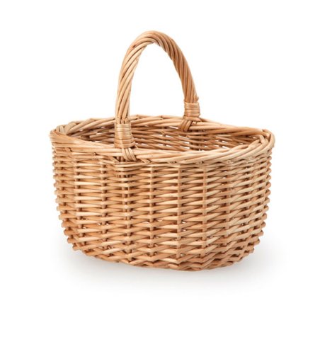 赤ずきんちゃんが御遣いに持っていきそうな小さな手籠です。 ままごとに使ったり、おもちゃ入れにしたりできます。