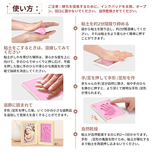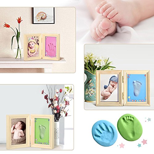 Ejoyous ベビーフレーム 赤ちゃん 手形 足形 写真立て 木製フレーム ベビー記念品 メモリアル フォトフレーム 卓上用 出産祝い 内祝い 手作り 無毒で安全 粘土付