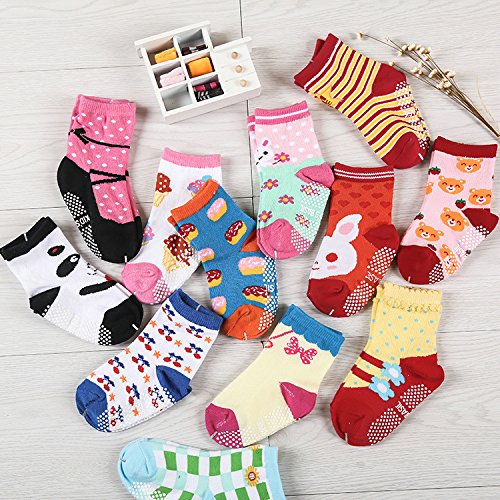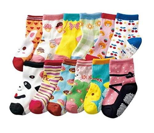 (エレキモチーブ) ElecMotive 12足組 女の子 可愛い模様 子供 靴下 ソックス 滑り止め 綿 6-36月