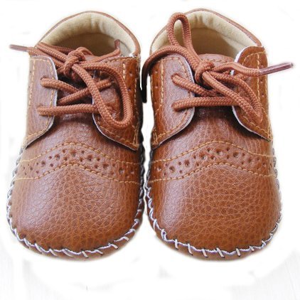 - Elee Vintage Baby Faux Leather Sneakers Non Slip Crib Shoes Loafers Shoe with Tie (7-12M, Brown)