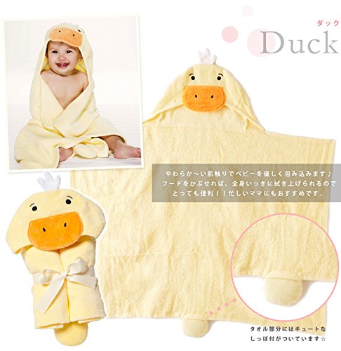 お風呂上がりやプール、水浴びの時もパッとはおれる可愛いバスタオル♪♪フード部分がキュートなアニマルのお顔になていて、頭にかぶると可愛い動物になっちゃいます!さらにタオル部分には愛くるしいシッポつき☆肌触りも柔らかく、ベビーにちょうど良いサイズ感で持ち運びにも便利です!
