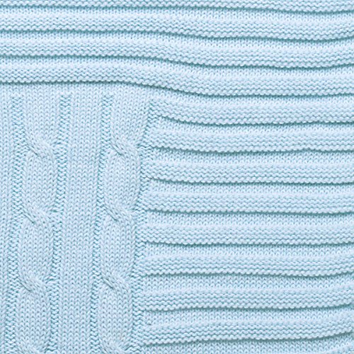 - Elegant Baby 100% Cotton, Wide Cable Knit Blanket with Wide Ribbed Border 36 x 45 Inch in Baby Blue