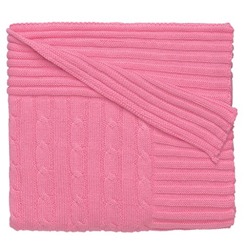 - Elegant Baby 100% Cotton Cable Knit Blanket with Wide Ribbed Border, Raspberry, 36 x 45