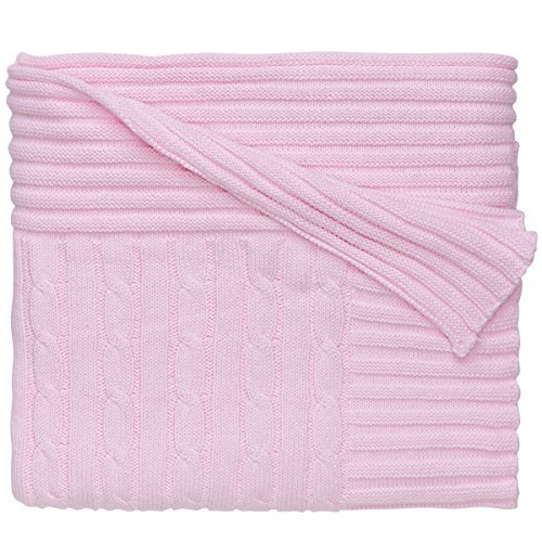 Elegant Baby 100% Cotton, Wide Cable Knit Blanket with Wide Ribbed Border 36 x 45 Inch in Pastel Pink