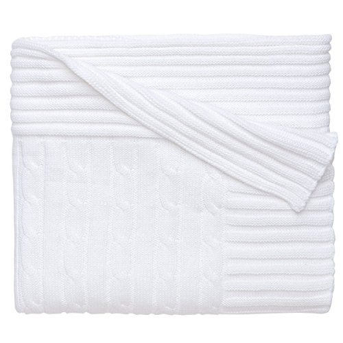 - Elegant Baby 100% Cotton, Wide Cable Knit Blanket with Wide Ribbed Border 36 x 45 Inch in White by Elegant Baby