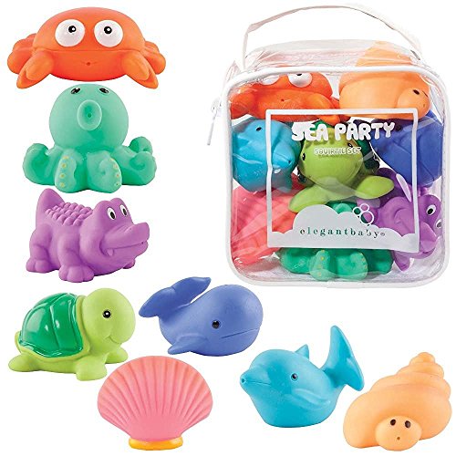 Elegant Baby Bath Time Fun Rubber Water Squirties Vinyl Zip Storage Bag, Sea Party, Set of 8