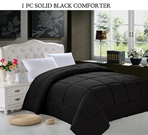 (King, Solid Black) - Elegant Comfort All Season Goose Down Alternative 1-Piece SOLID Black Comforter - Available In All Sizes And Colours, King/Cal King, Black